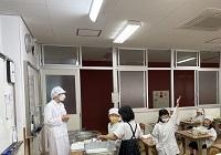 今日の給食の時間に、東京家政大学から栄養教員の勉強をするために来られた教育実習生が、2年生の給食の様子を見に来てくださいました。