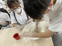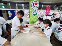 みんな慣れない手つきでうどんを打ち始めたものの、あっという間に慣れて、とても上手に打っていました。