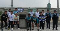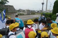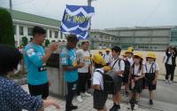 今日は、FC今治と警察署の方々が、登下校のときに正門に立ってくださいました。