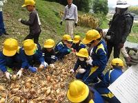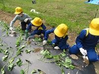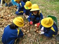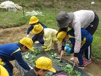 説明の後、花組、菊組に別れて、サツマイモの苗植えと玉ねぎの収穫をしました。