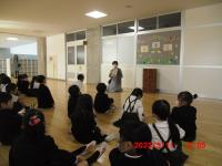 1年生は、花組、菊組が一緒にお話を聞きました。1年生のかわいらしい反応に、ボランティアの方も喜んでくださいました。