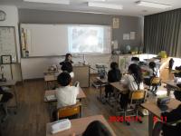 その他の学年は、ボランティアの方ごとに、スクリーンを使って映像を見せながら話されたり、問いかけるように話されたりして、お話を聞く子どもたちの目は輝いていました。
