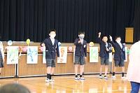 全学年の出し物が終わった後に、1年生からお礼の言葉と校歌のプレゼントがありました。
