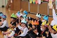 1年生一人一人にかぶらせてあげました。とても素敵な贈り物になりました。