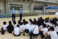 横断歩道をわたるときは、車を運転する人に分かるように、手を挙げてわたることが大切であることを話していただきました。その後、実際に練習しました。