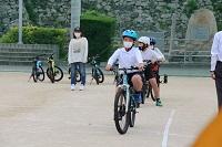 今日、交通安全教室がありました。1・2年生は歩行訓練をし、3~6年生は自転車の訓練をしました。