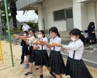 実験では、空気や水の性質を利用した実験をしました。空気でっぽうや水鉄砲から、勢いよくスポンジや水が飛び出し、楽しみながらも空気と水のそれぞれの性質の違いを体感しました。